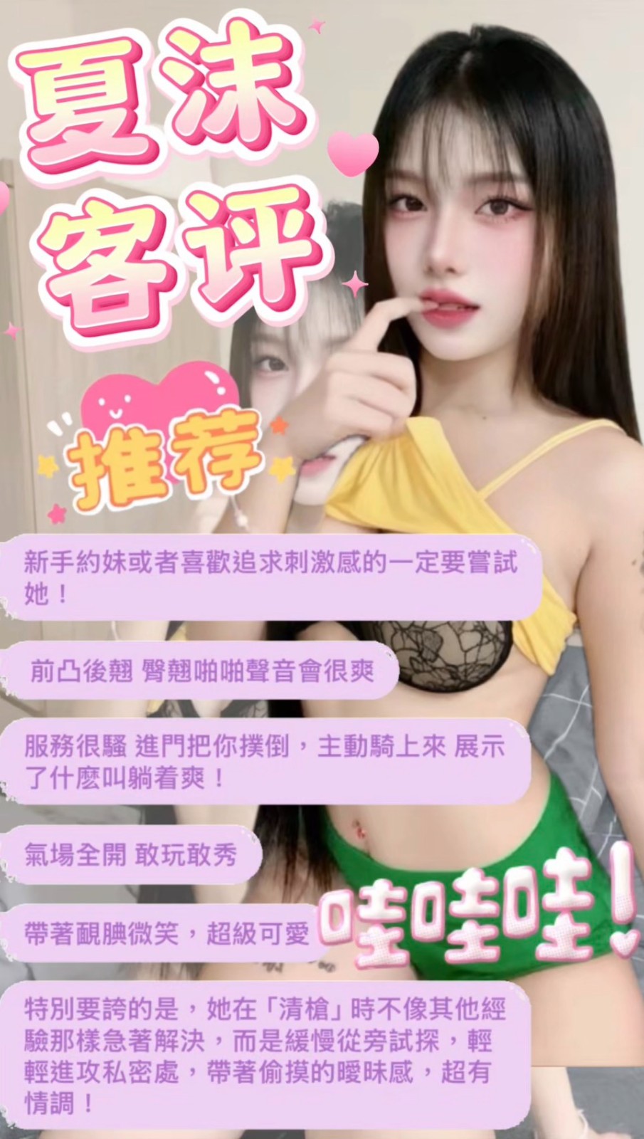 👍項目:無套吹/共浴/親嘴/舌吻/品鮑/奶炮/水中蕭/胸推/屁推/按摩